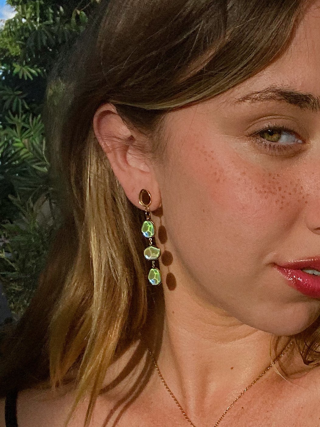 🩵 From icy blue hues in soft natural light to bright neon green in the sun, these luminous dangles are inspired by aurora borealis in the winter night sky 🌌
