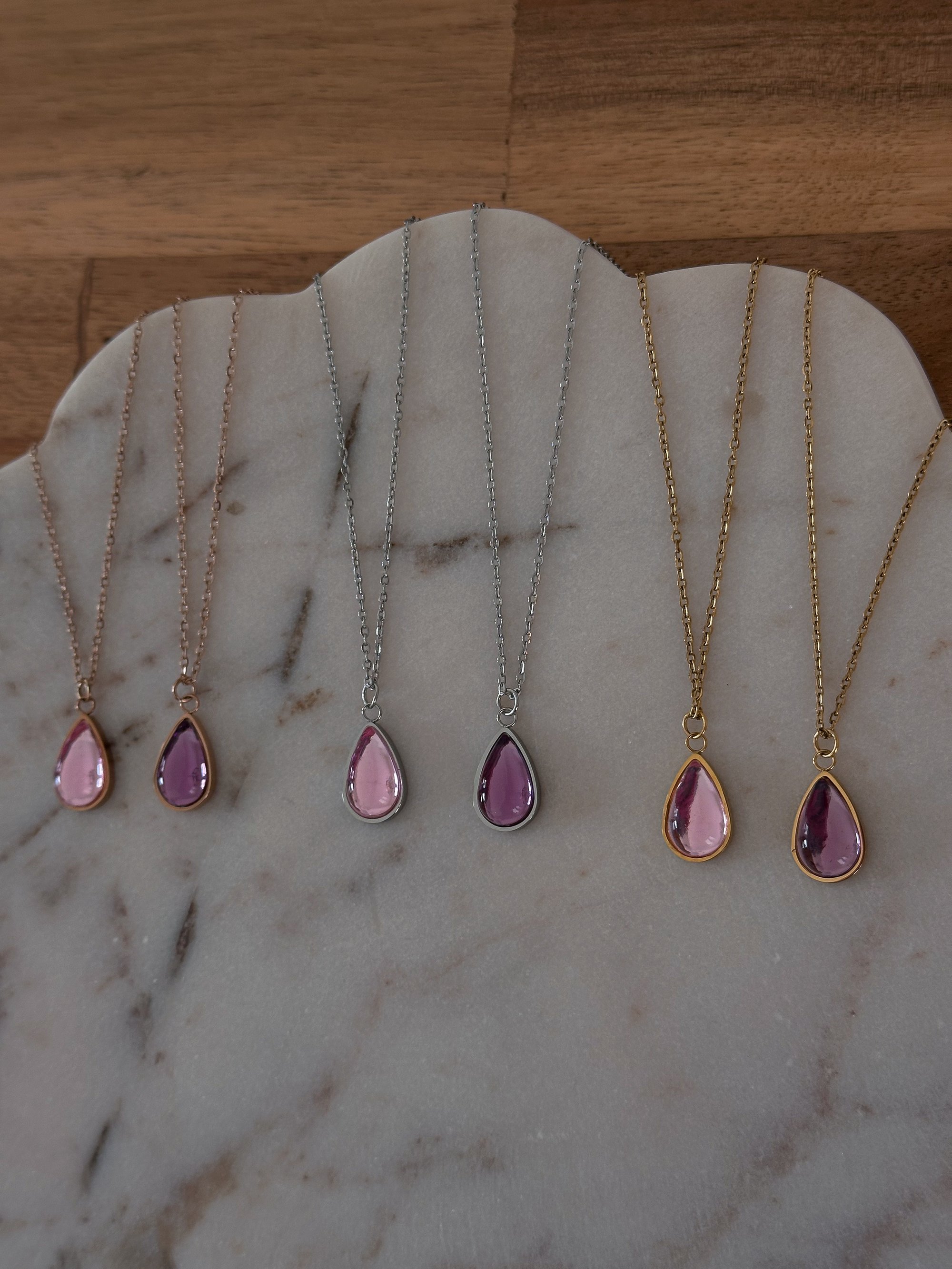 š¤ Lab created water drop gem- dahlia pink or iris purple š¤ ~16ā + 2ā extension