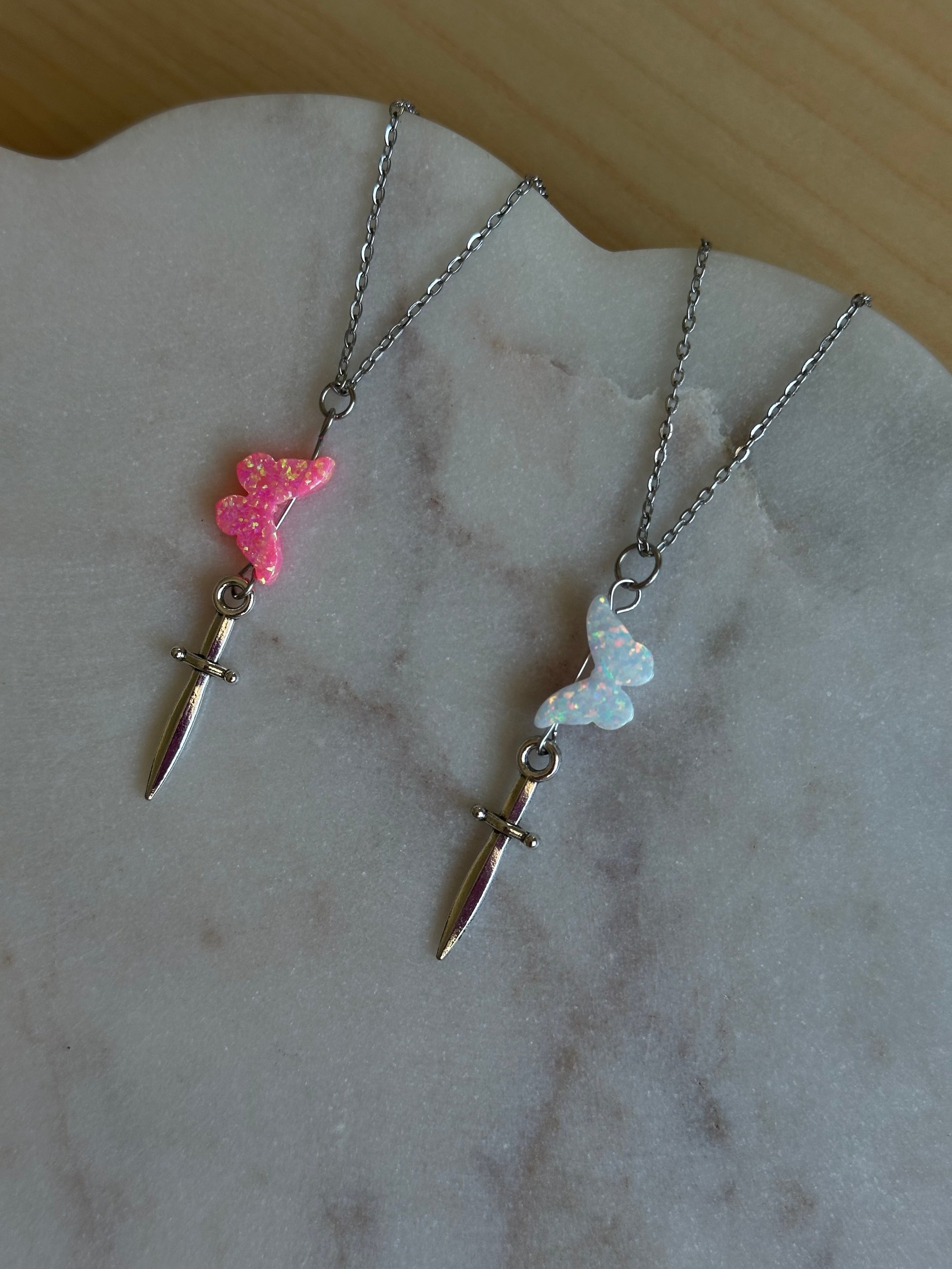 Flutter of Death Necklace (Silver- Choose Your Color)