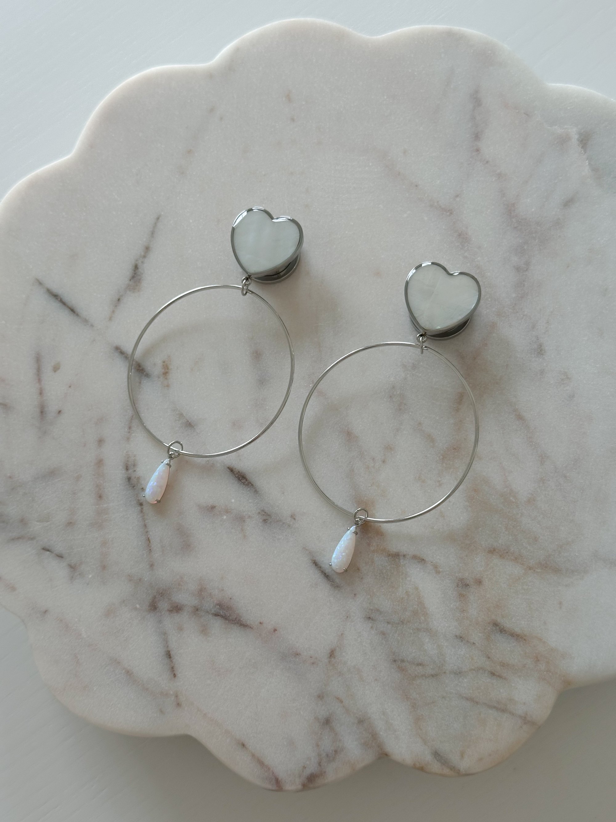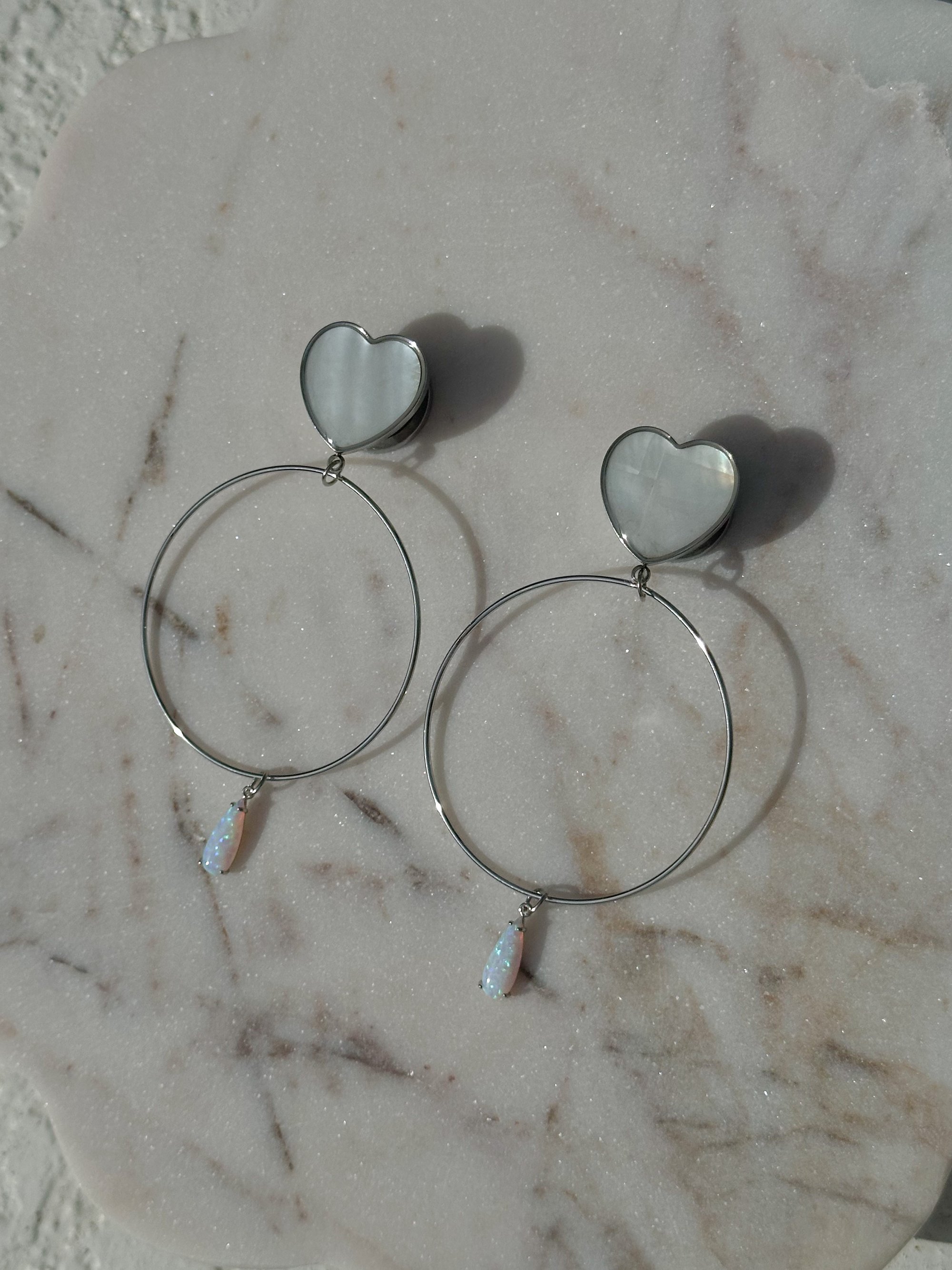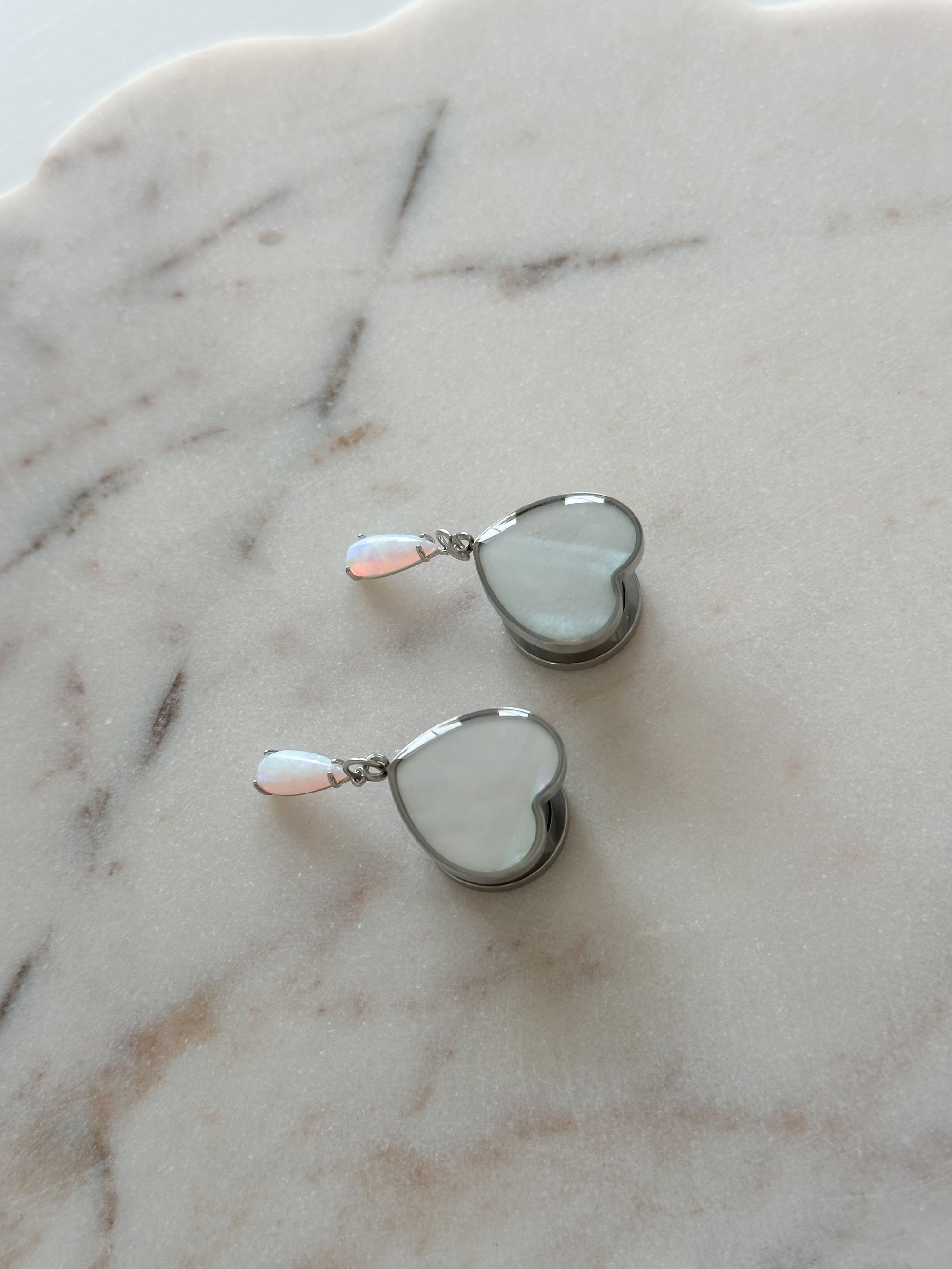 Pearly Heart Fire Opals (Silver or Gold) (Hoops Optional)