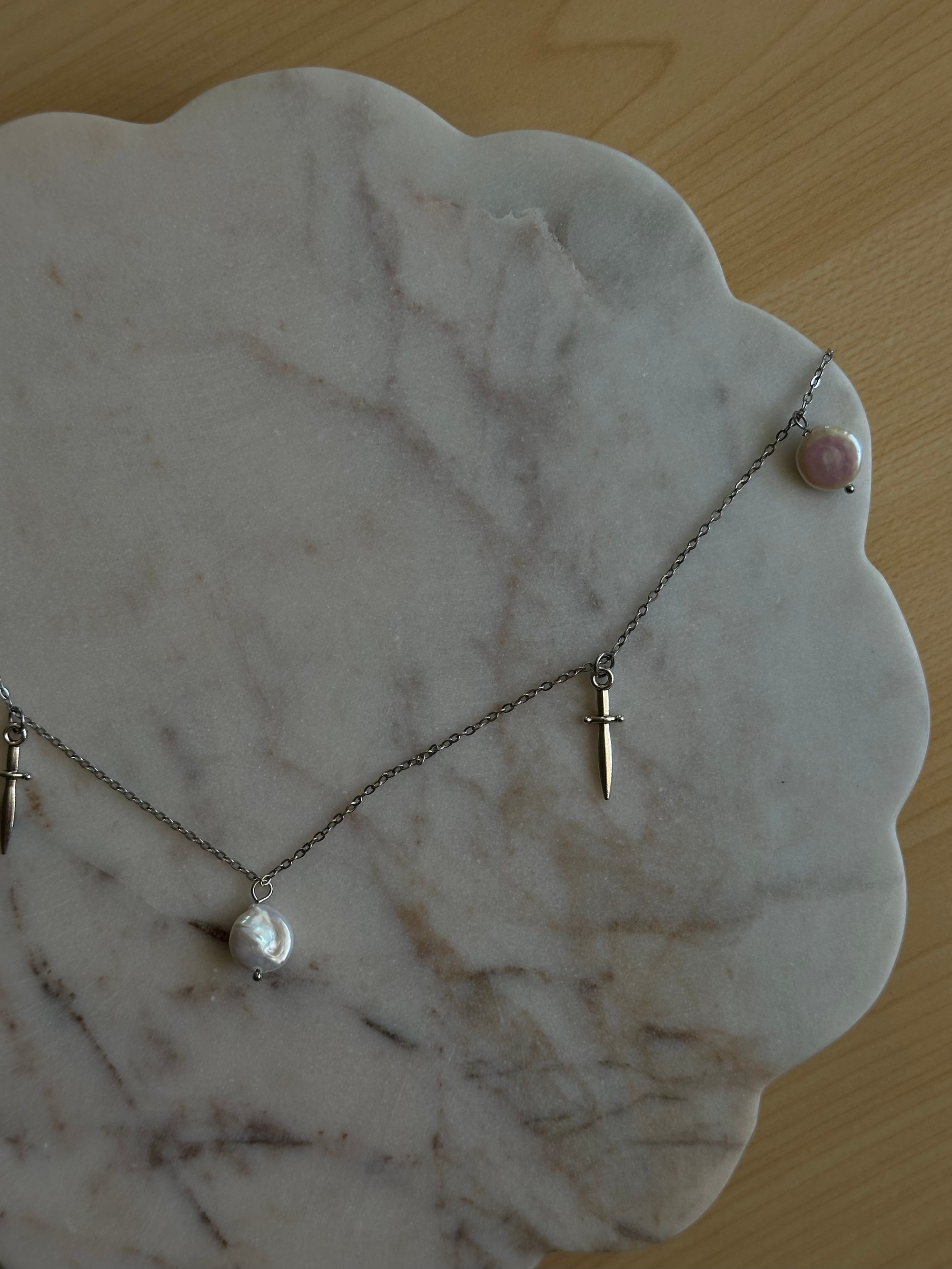 🤍 Keshi/freshwater pearls + deadly silver-plated daggers