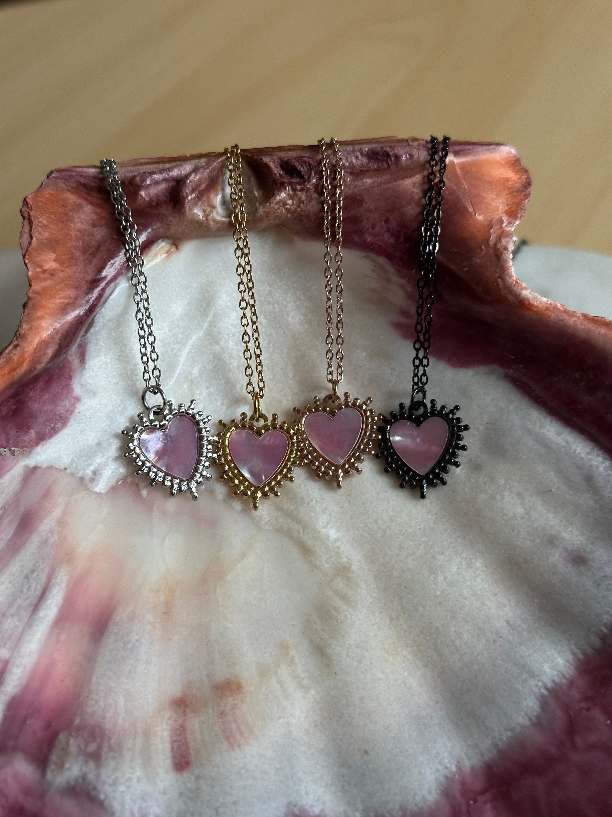 The prettiest pink baby of the beloved Delphine Hearts, a mother of pearl heart in a cute but edgy spiky heart design. 💕