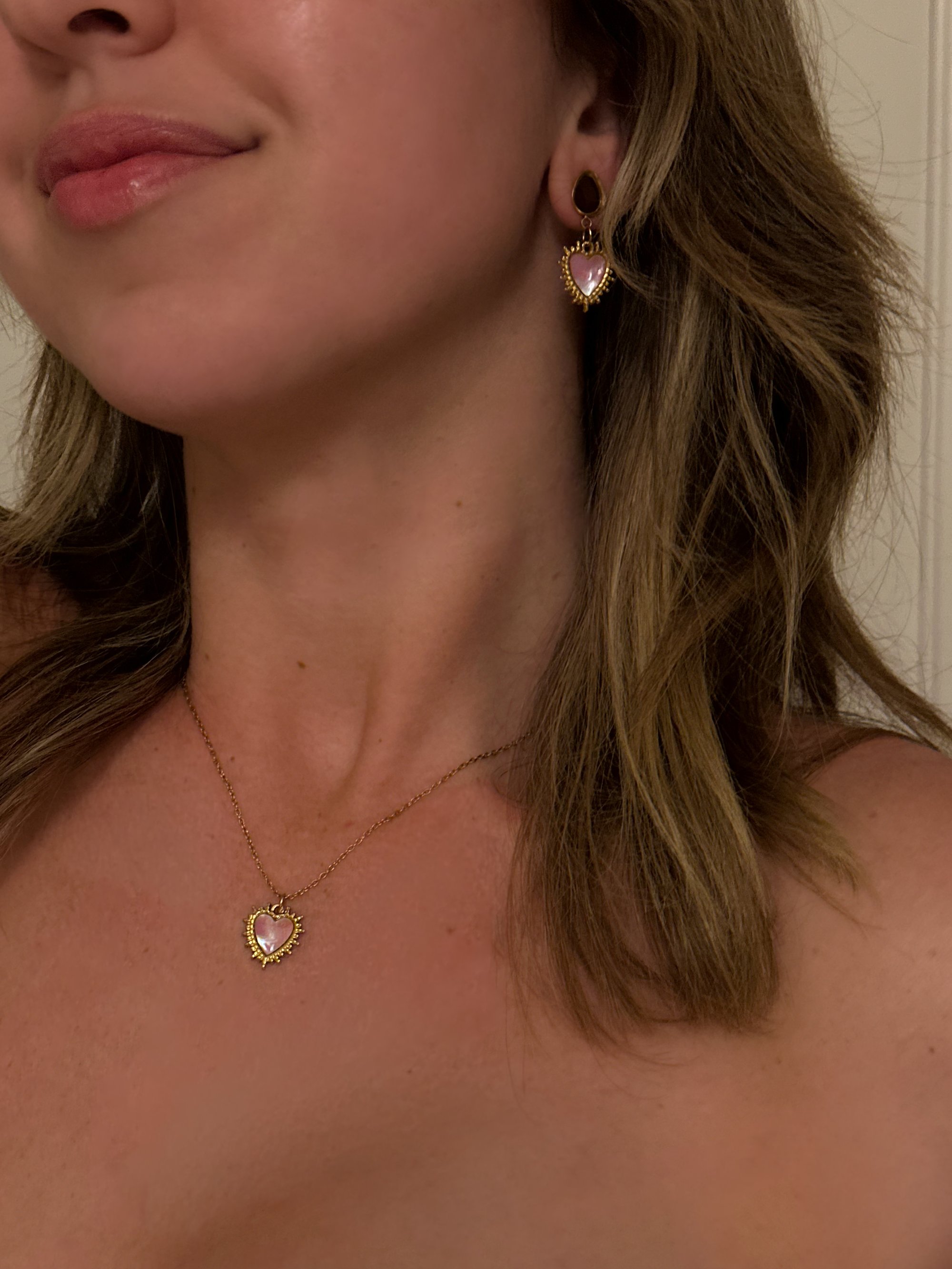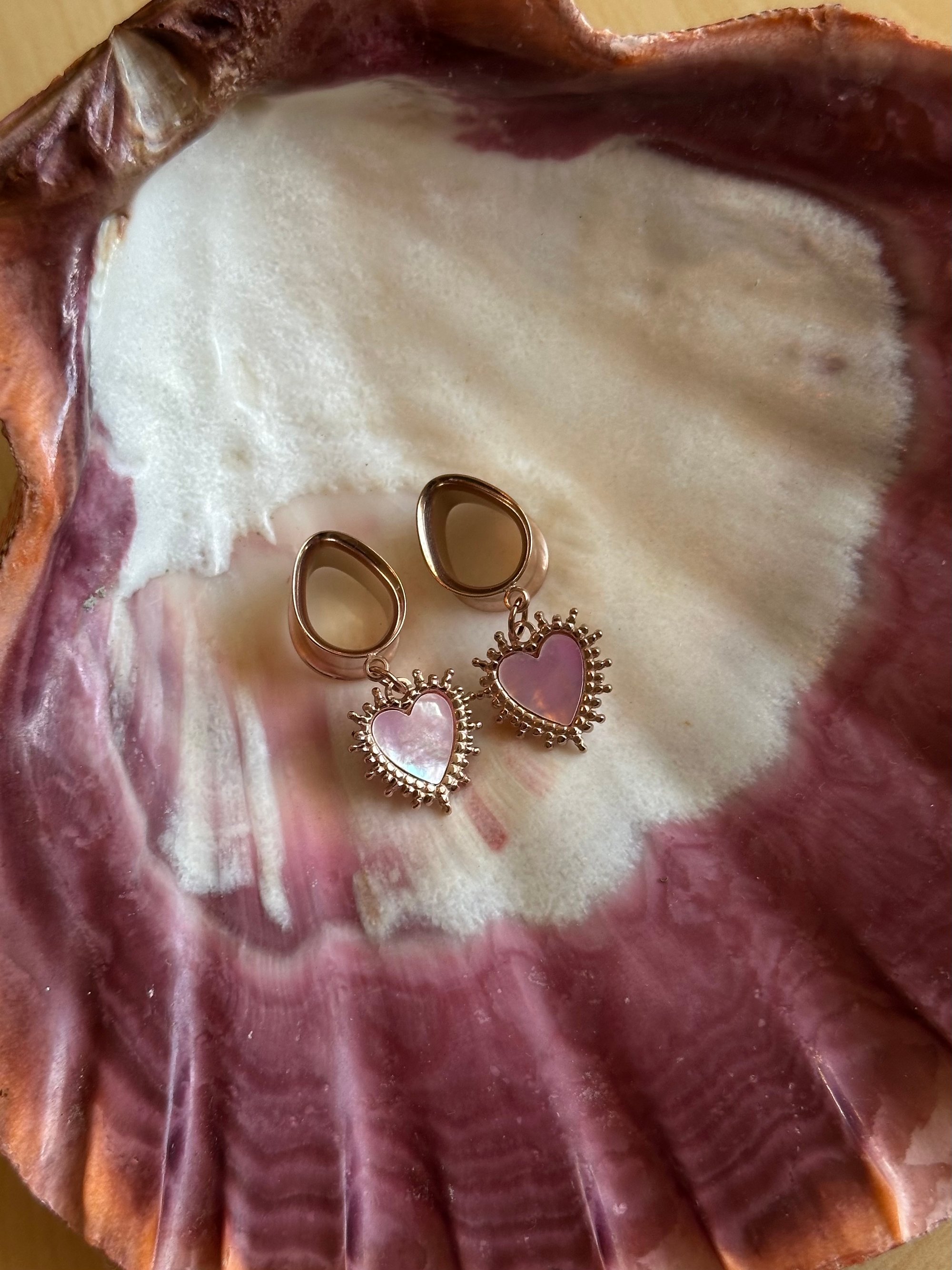 The prettiest pink baby of the beloved Delphine Hearts, a mother of pearl heart in a cute but edgy spiky heart design. 💕