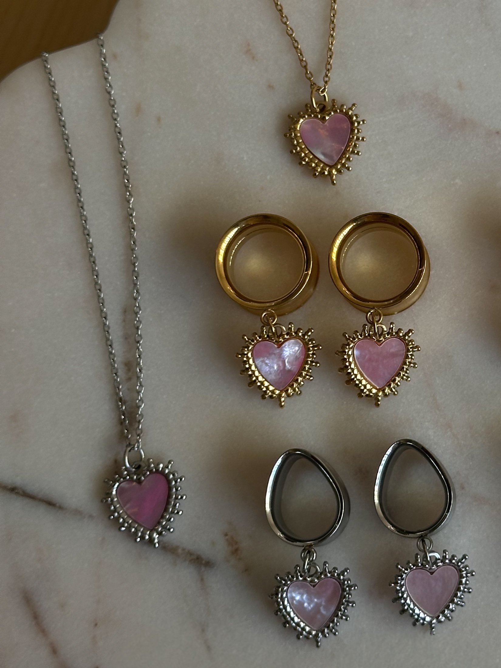 The prettiest pink baby of the beloved Delphine Hearts, a mother of pearl heart in a cute but edgy spiky heart design. 💕
