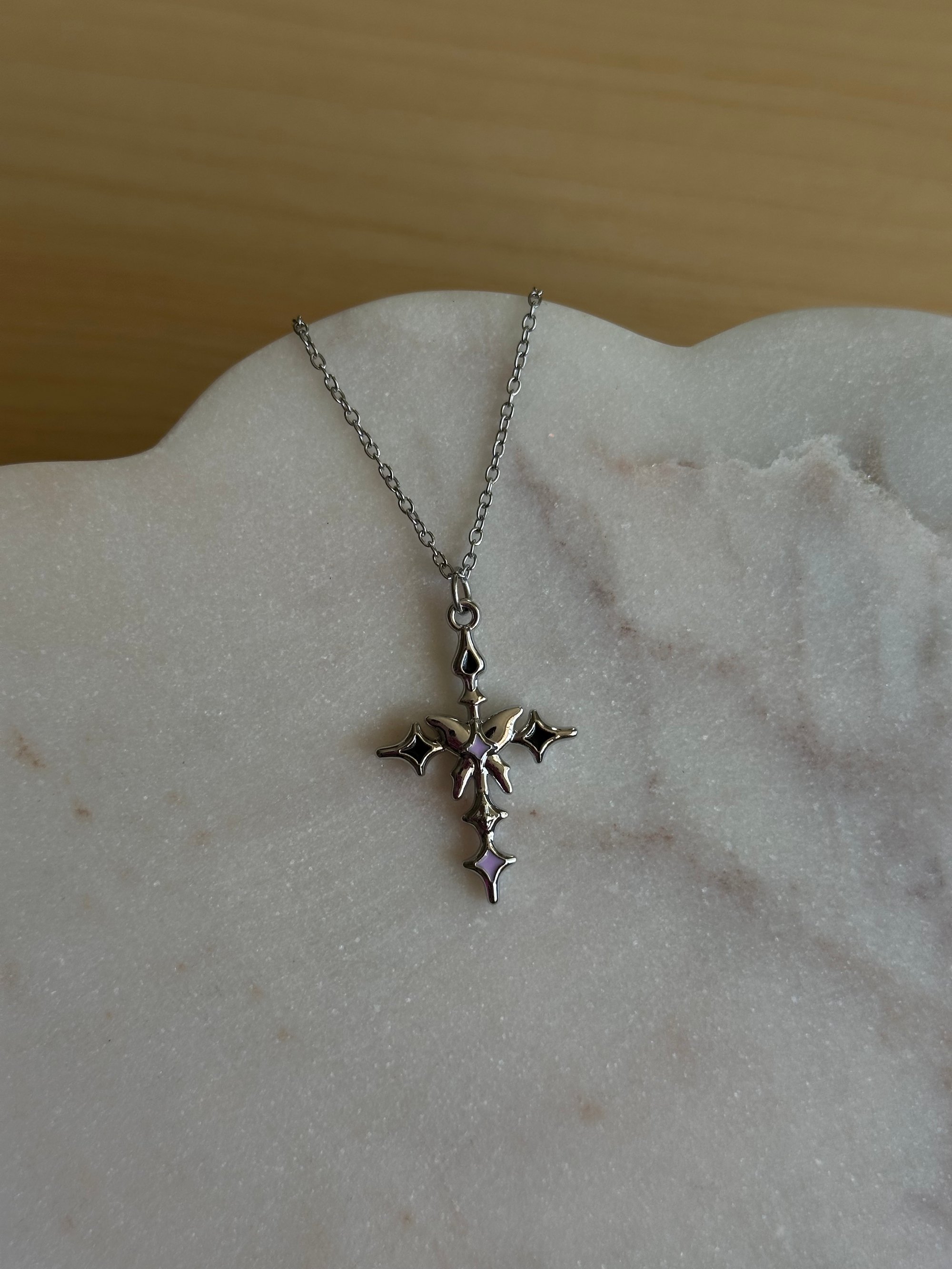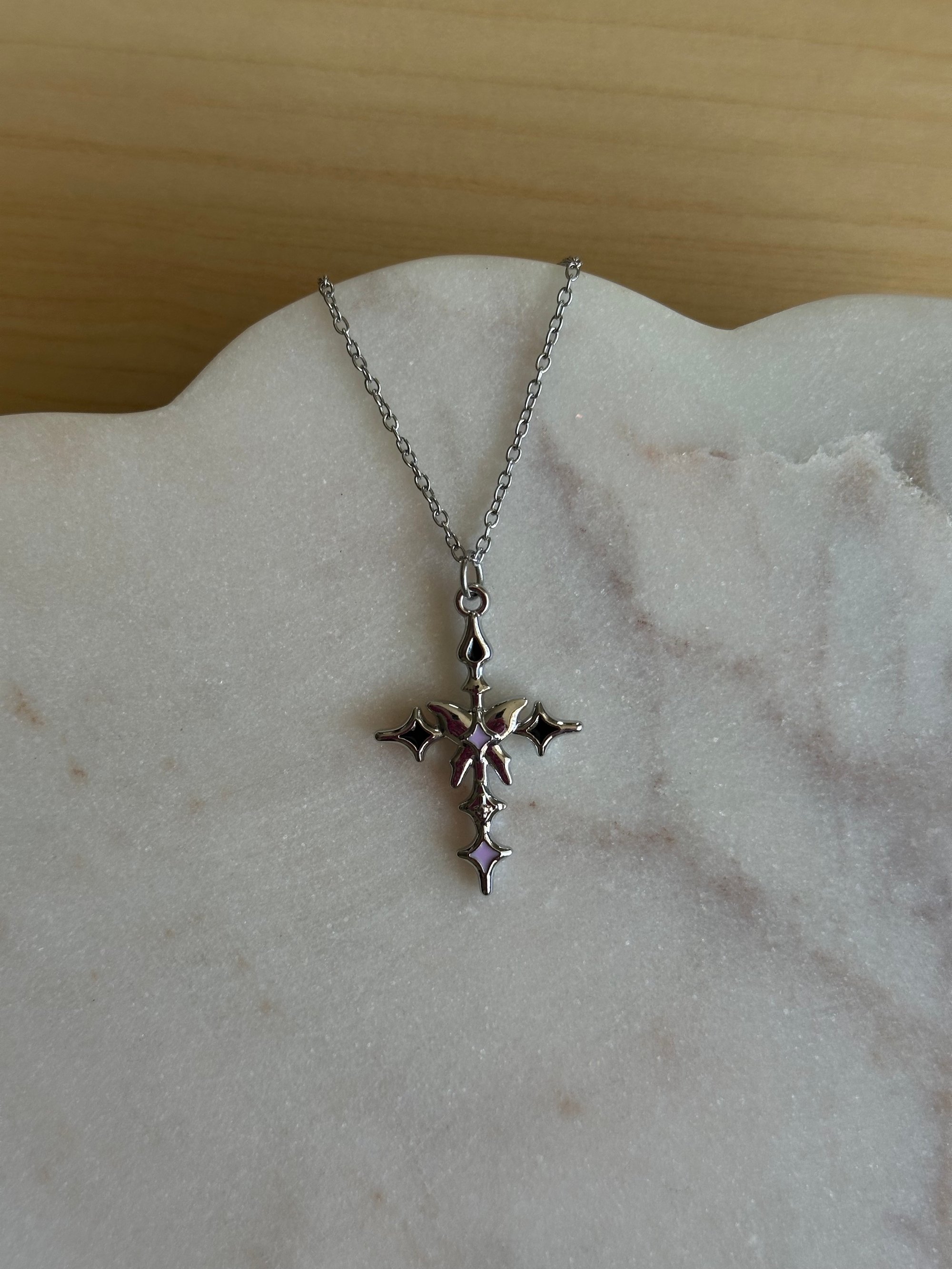 Pop Punk Princess Butterfly Cross Necklace (Silver)